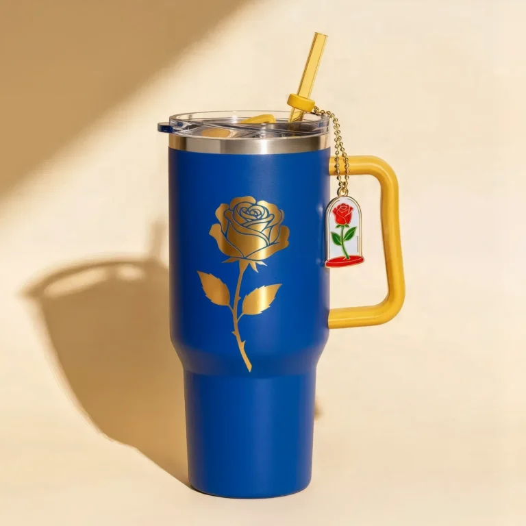 🌹 Copo Térmico A Bela e a Rosa Encantada 1,15 L + Pingente Brinde