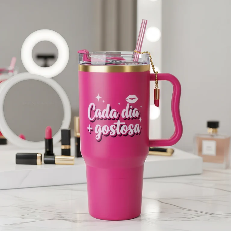 💄 Copo Térmico Cada Dia + Gostosa Pink 1,15 L + Pingente Brinde