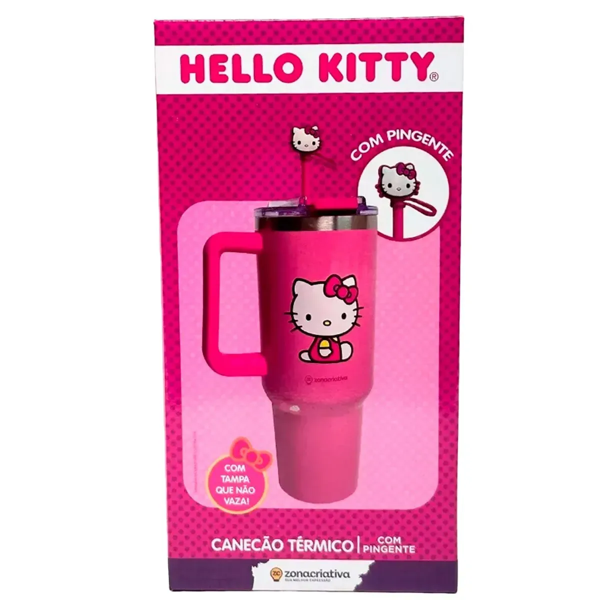 - Charme inconfundível: Estampa exclusiva da Hello Kitty e um pingente fofo no canudo.