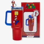 - Design exclusivo: Estampa do Super Mario e pingente de cogumelo no canudo, direto do mundo dos games.
