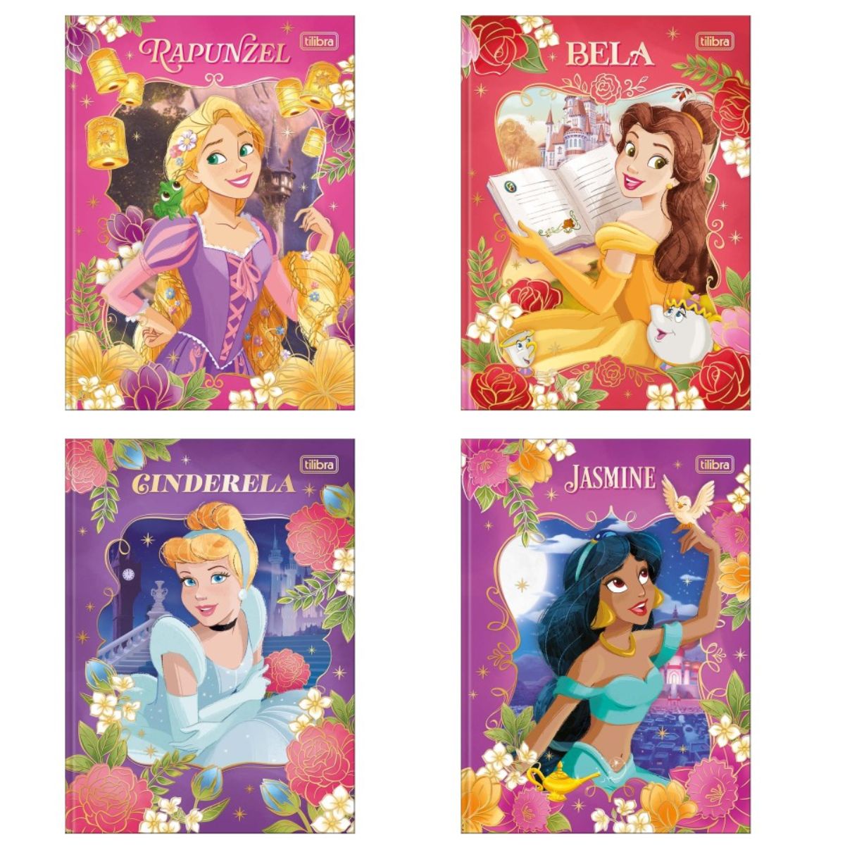 KIT 4 Caderno Brochura Colegial Princesas (160 Folhas Cada)