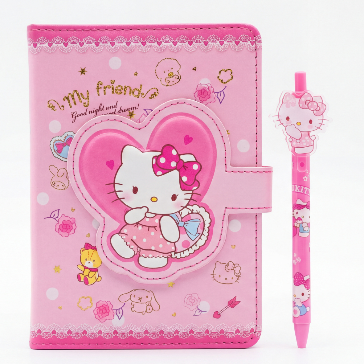- Conjunto Harmonioso: O Kit Caderno Luxo + Caneta com Top Decorativo – Sanrio é a mistura perfeita entre funcionalidade e estilo.